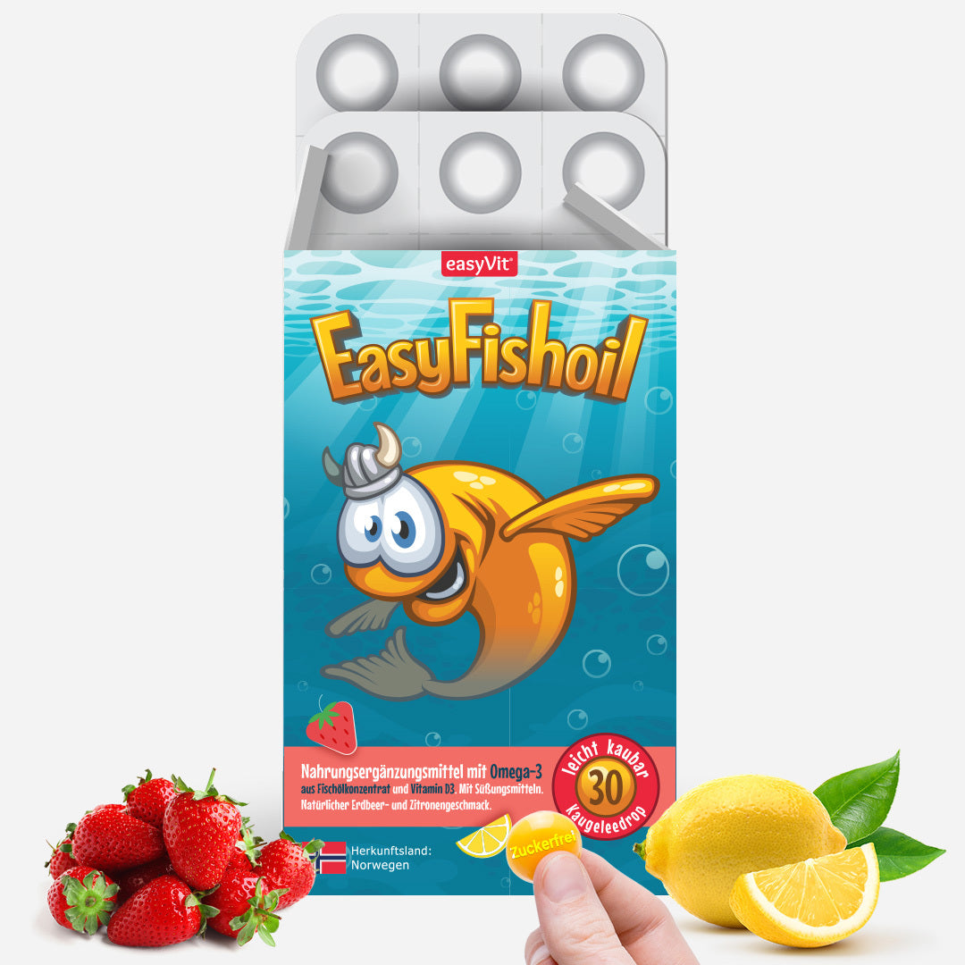 EasyFishoil für Kinder ist eine köstliche Möglichkeit, Omega 3 mit Vitamin D in die Ernährung zu integrieren. Diese leicht zu kauende Gelform unterstützt das gesunde Wachstum und das Immunsystem Ihrer Kinder. Mit ihrem leckeren Geschmack sind sie eine einfache und angenehme Ergänzung für eine gesunde Entwicklung. Machen Sie die tägliche Einnahme zum Genuss für Ihre Kinder mit unseren EasyFishoil Kaudrops.